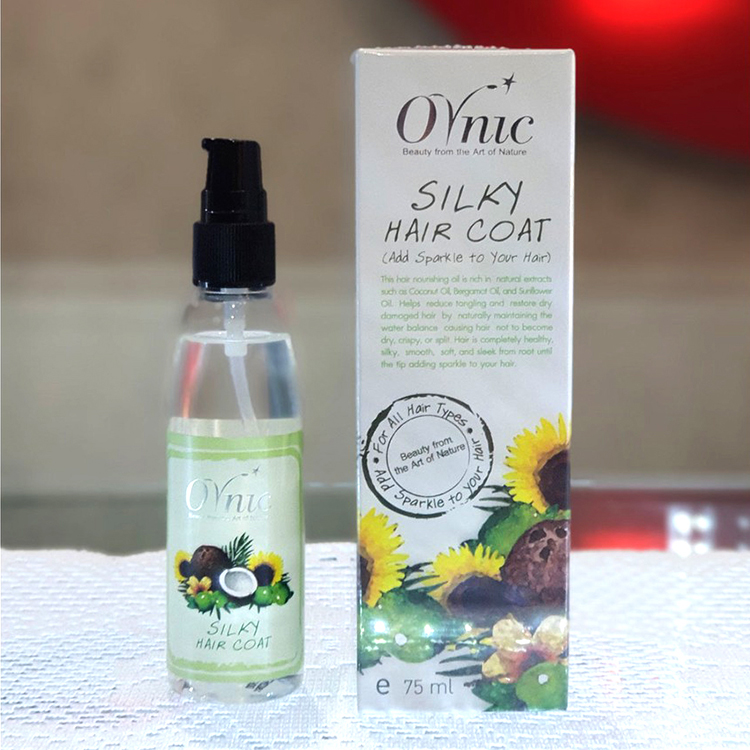 ออนิค ซิลค์กี้ แฮร์โค๊ท เป็นออยล์บำรุงผมออแกนิค ช่วยฟื้นฟูผมแห้งเสีย ลดการพันกันของเส้นผม